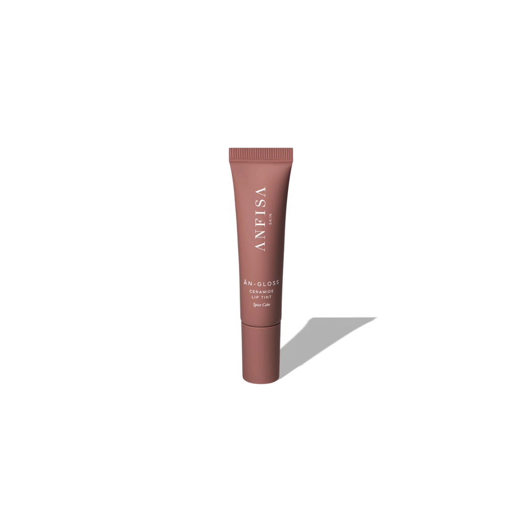 Meet Spice Cake: The award-winning ÂN-GLOSS formula, in a sheer, rosy brown lip tint. Powered by CeraBind Technology™ and infused with five skin-identical ceramides and two plumping peptides, it deeply hydrates and enhances fullness, while Cooling Tip Technology™ soothes on contact.